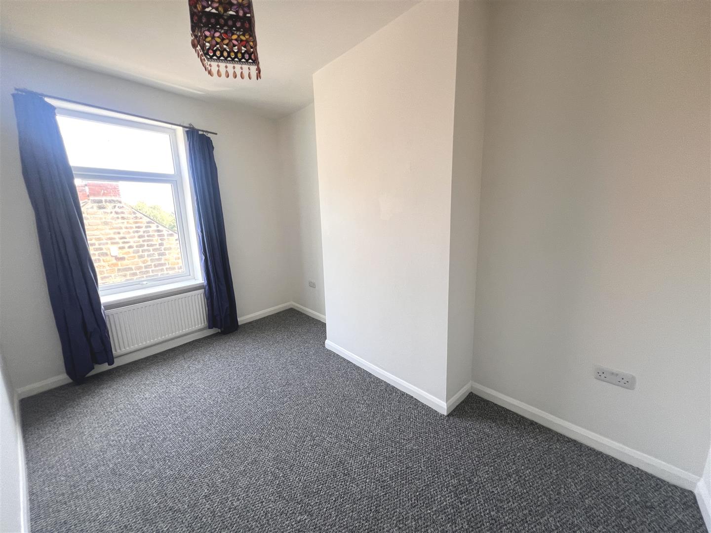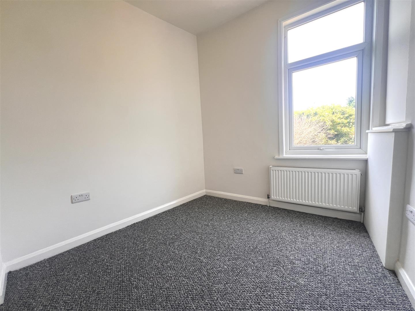 A front facing bedroom with radiator.