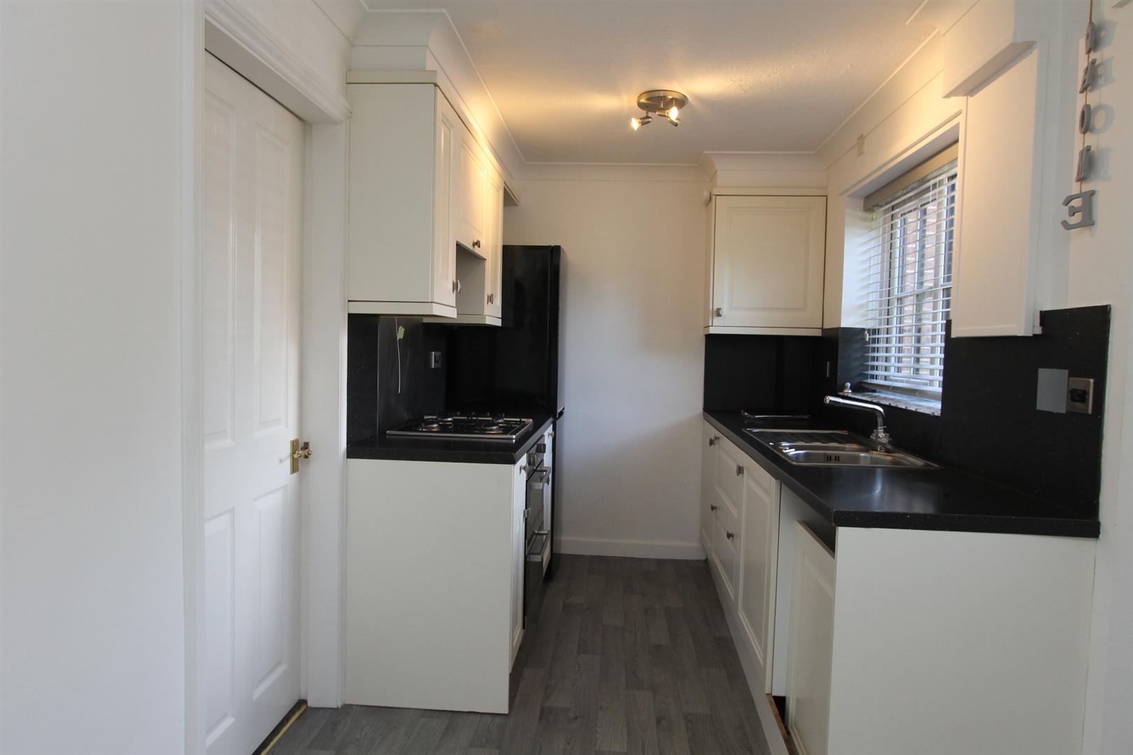 A composite entrance door opens into the kitchen, which has a front facing window and radiator. It is fitted with upgraded base and wall mounted units, comprising a stainless steel one and a half bowl sink with mixer tap and cupboard under, plus area of worktop surfaces with matching upstands. There is a built in stainless steel double oven with four ring gas hob and extractor hood above, space for integrated washing machine and space for freestanding fridge/freezer.